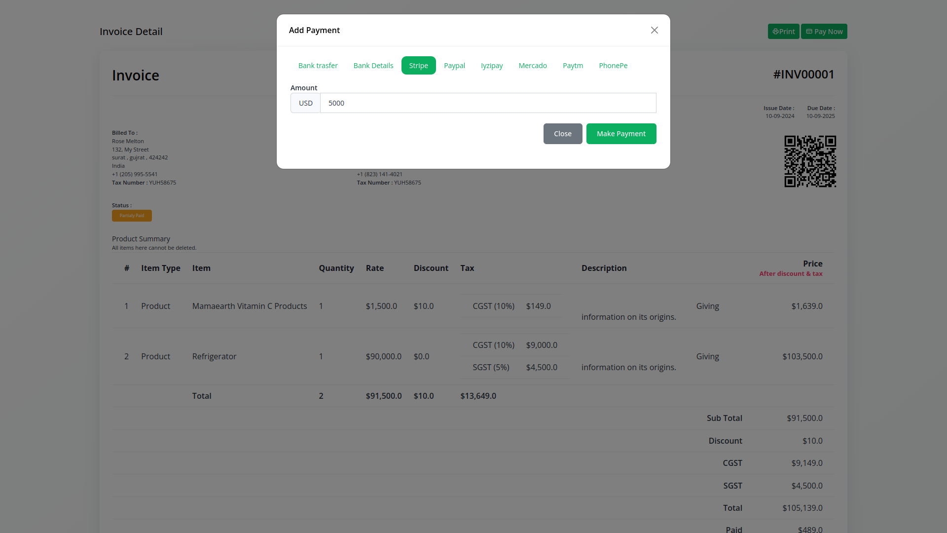 Stripe payment gateway